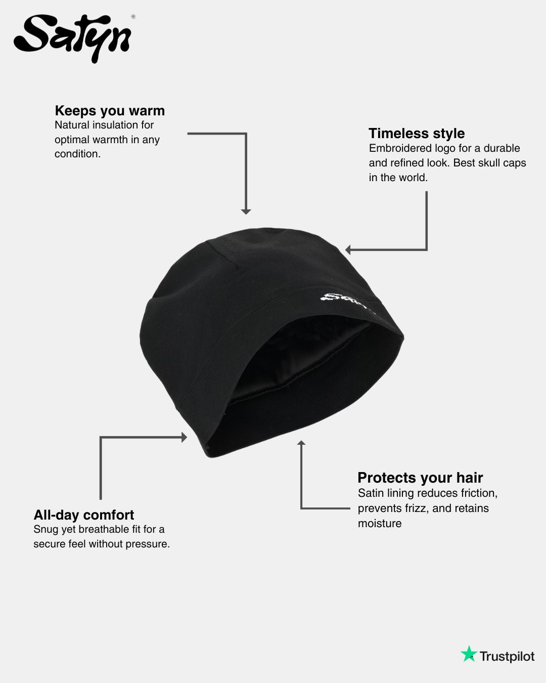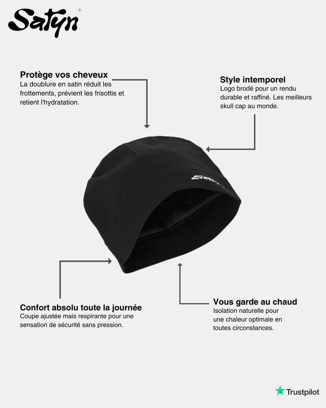 Take care of your hair in style now with our Satyn beanie, the essential accessory to combine modern style and hair care! This beanie is offered for streetwear lovers and those looking for functionality without compromising on their look. Our beanie is a perfect balance between aesthetics and well-being.